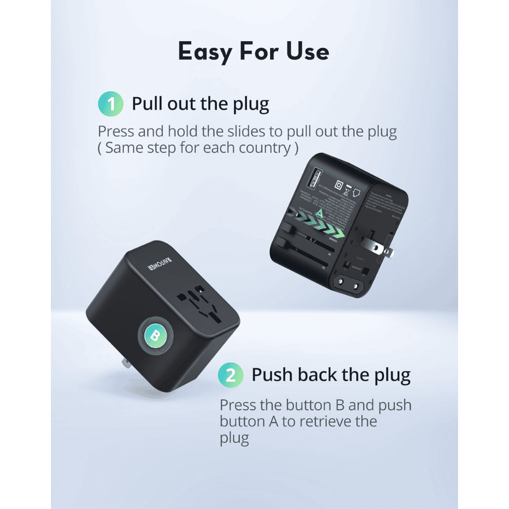 - غالبًا ما يتميز بتصميم صغير وخفيف الوزن، وقد يحتوي على مقابس قابلة للطي (Foldable Prongs) في بعض الإصدارات الإقليمية، مما يجعله سهل الحمل للغاية في حقيبة السفر أو الجيب.