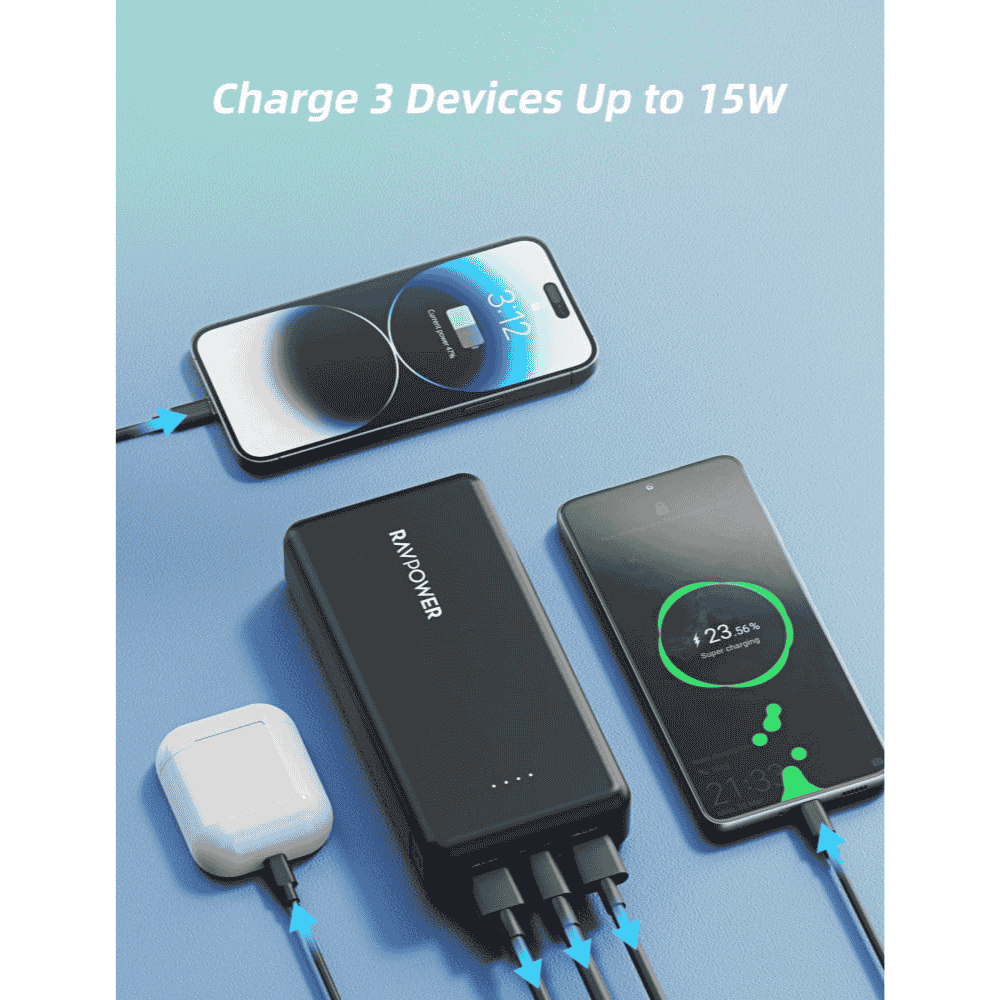 إذا كنت تبحث عن باور بانك بسعة كبيرة جدًا لضمان عدم نفاد بطارية أجهزتك، وتقدّر مرونة شحن أربعة أجهزة في وقت واحد، وترغب في شحن سريع فعال للاستخدام اليومي، فإن هذا الموديل من RAVPOWER يوفر لك حلًا موثوقًا ومتعدد الاستخدامات.
