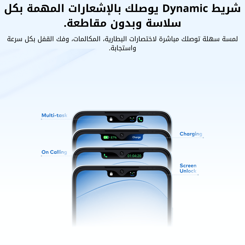 - شاشة HD+ كبيرة مع ميزة Dynamic Bar.
