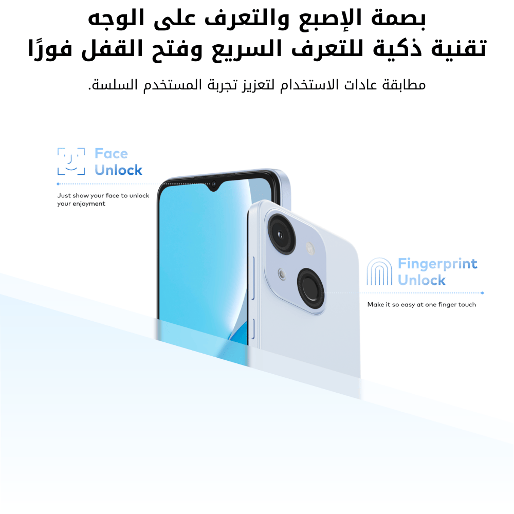 - الأمان: مستشعر بصمة الأصبع جانبي (مدمج بزر الطاقة) + فتح القفل بالوجه.