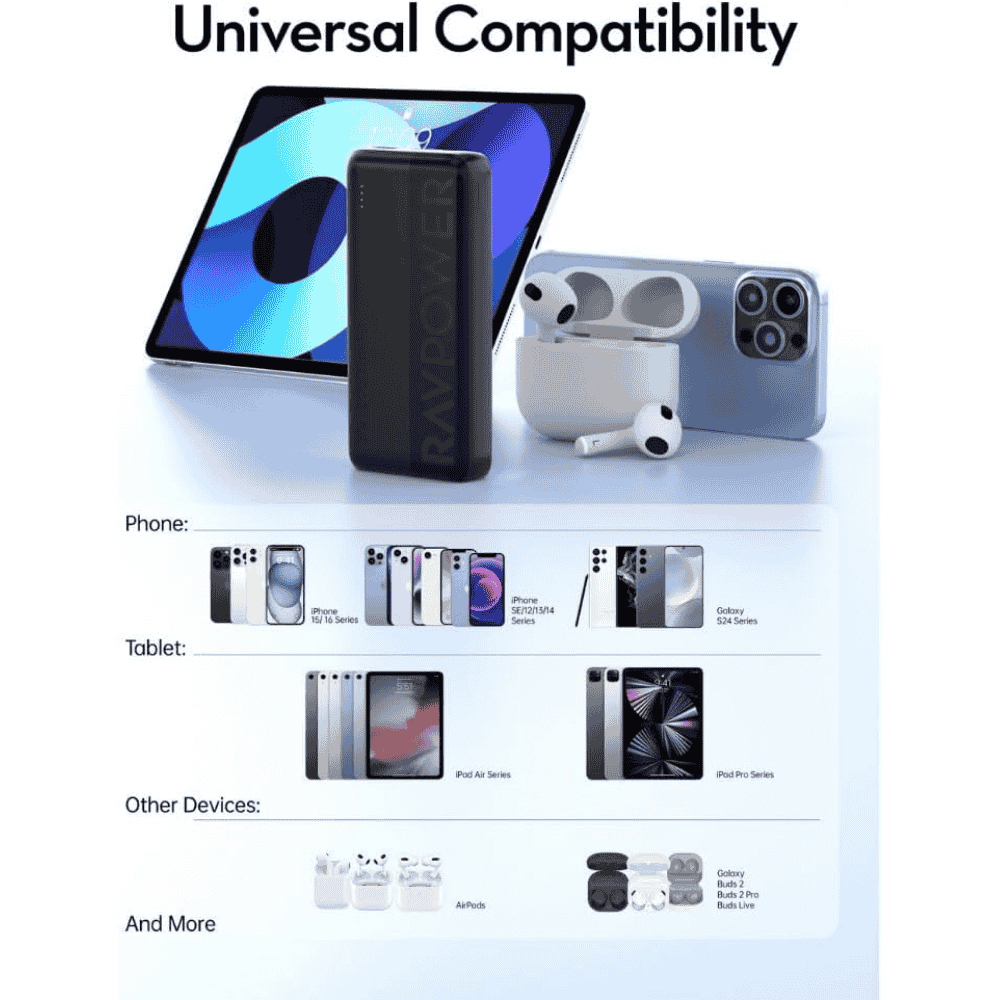 إذا كنت تبحث عن باور بانك عالي السعة يوفر شحنًا سريعًا لأحدث هواتفك الذكية وأجهزتك اللوحية، مع القدرة على شحن أجهزة متعددة في وقت واحد، فإن هذا الموديل من RAVPOWER هو خيار ممتاز يوفر التوازن بين القوة، التنوع، وسهولة الحمل.
